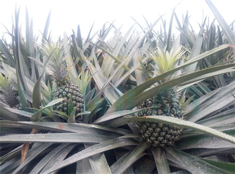 王大哥在追肥過(guò)程中,幾乎全程使用的是拉姆拉翠姆顆粒水溶肥,營(yíng)養(yǎng)全,吸收快,鳳梨生長(zhǎng)期間很少出現(xiàn)病害,整體植株健壯,直至催花前停止施肥,之后盡可能少使用磷肥,在坐果期,以翠姆平衡、高鉀水溶肥為主,翠姆大量元素水溶肥和沖施肥交替使用,而翠姆大量元素水溶肥采用無(wú)機(jī)化學(xué)合成技術(shù),主要促進(jìn)穩(wěn)產(chǎn)豐收,增加口感甜度,果實(shí)膨大快。